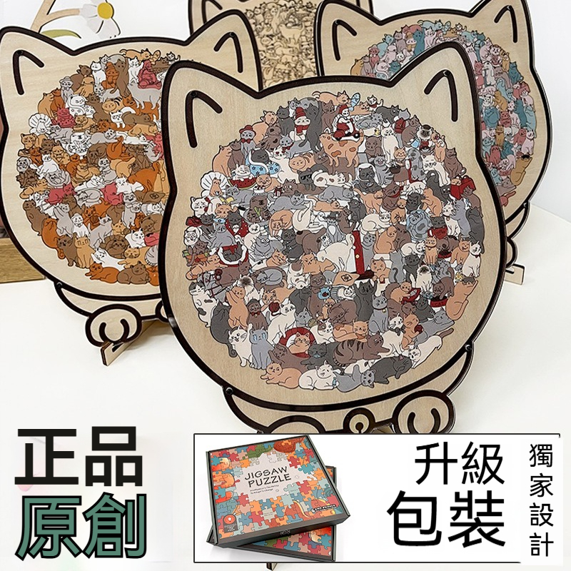 原創正品「趣貓集莫蘭迪拼圖」✅ 135片全異形切割 ✅ 原木手感溫潤 ✅ 莫蘭迪藝術色階 ✅ 附贈解謎彩蛋
