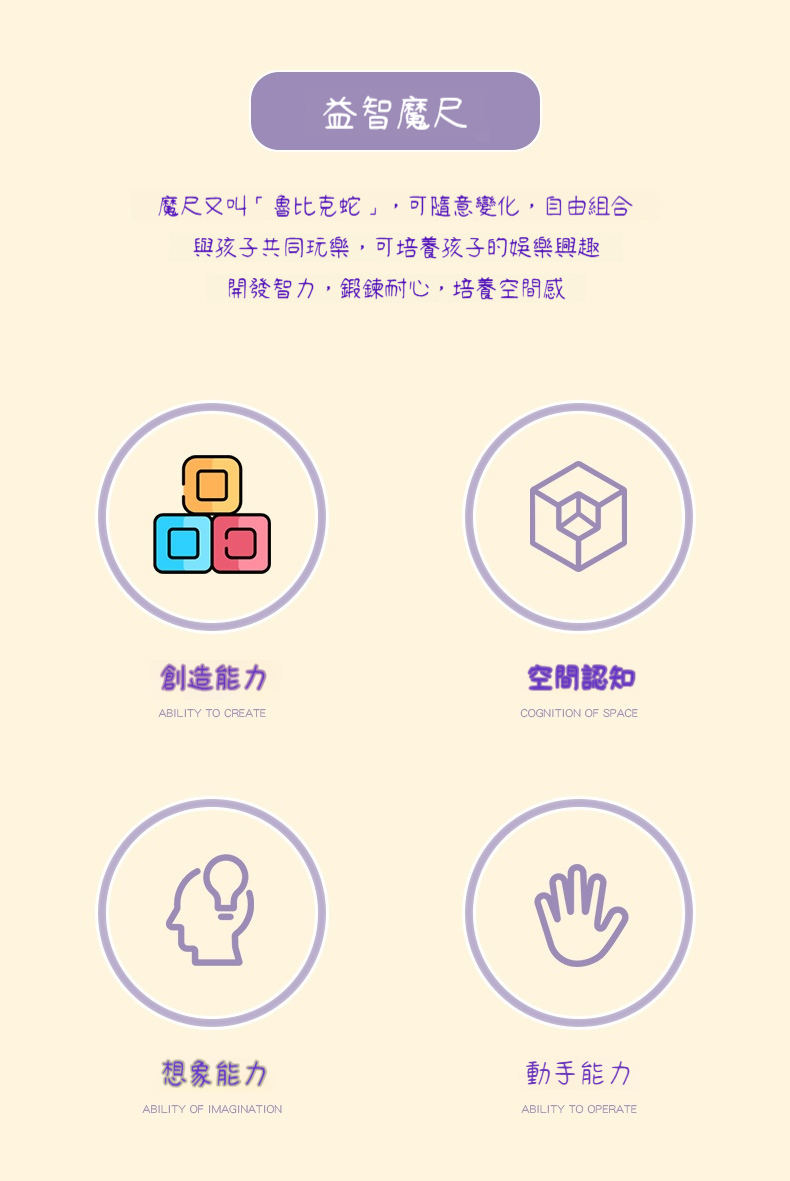 兒童大號百變魔尺 72 段✅ 5~12 歲兒童(也適合更小,但需大人陪同避免誤吞) ✅ 想訓練手眼協調、空間邏輯、耐心的家長 ✅ 想減少 3C 時間,讓囡仔動手動腦 ✅ 生日、兒童節、聖誕節、過年送禮 ✅ 老師、安親班、才藝班當作課堂教具