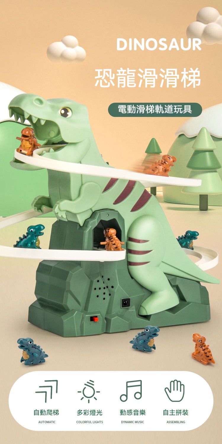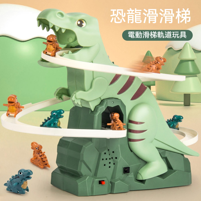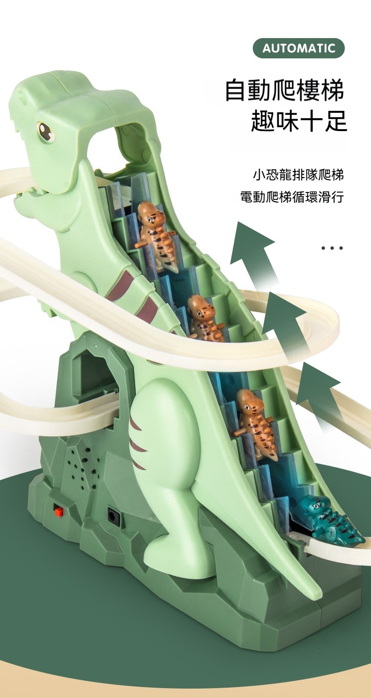 ✨新款小恐龍爬樓梯✅ 慣性 + 電動雙模式✅ 軌道隨便拼隨便加✅ 聲光特效像在侏羅紀