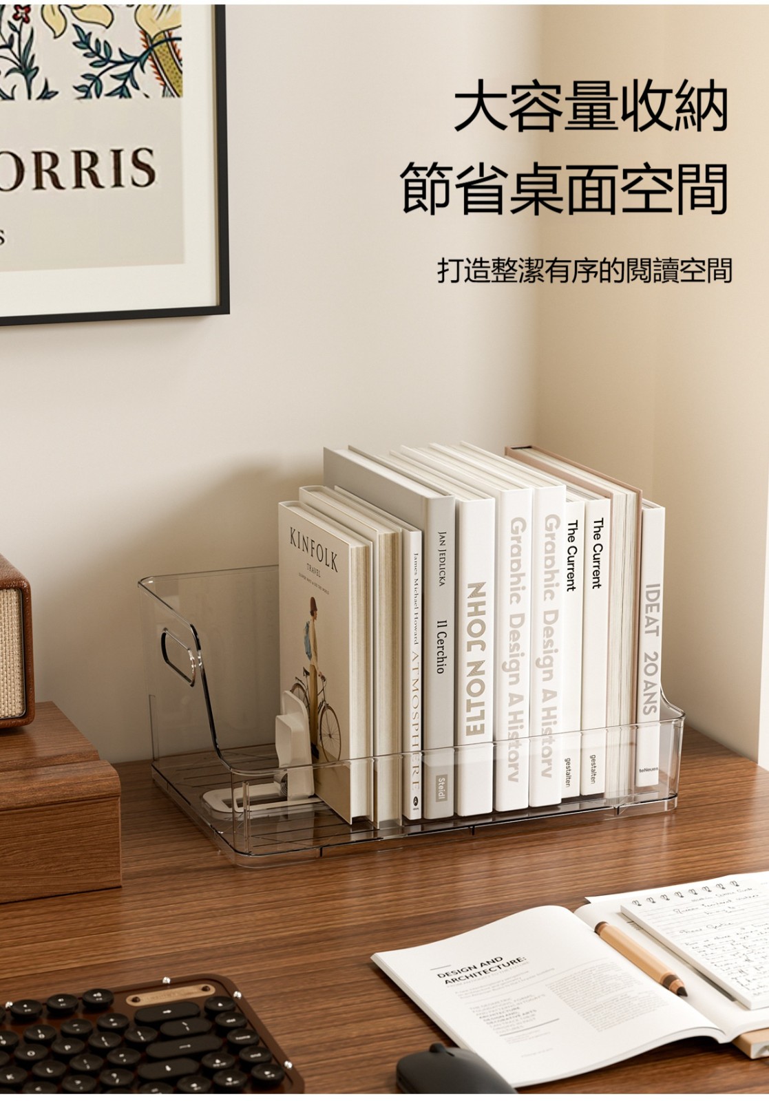 可伸縮書架/書本收納盒(桌面書本收納神器/學生書桌置物架/整理盒)✅ 伸縮設計,寬度自由調 → 20~45公分隨你拉,配合書桌大小 ✅ 課本直直站,不倒塌 → 金屬或厚塑膠隔板,支撐力夠,書本乖乖立正 ✅ 底部加高防滑 → 書本不會往前滑,拿書時旁邊也不會倒 ✅ 一體式收納盒設計 → 除了書架,還可以放筆、橡皮擦、便條紙
