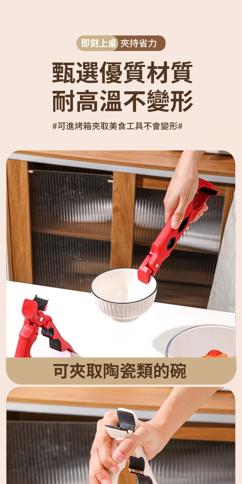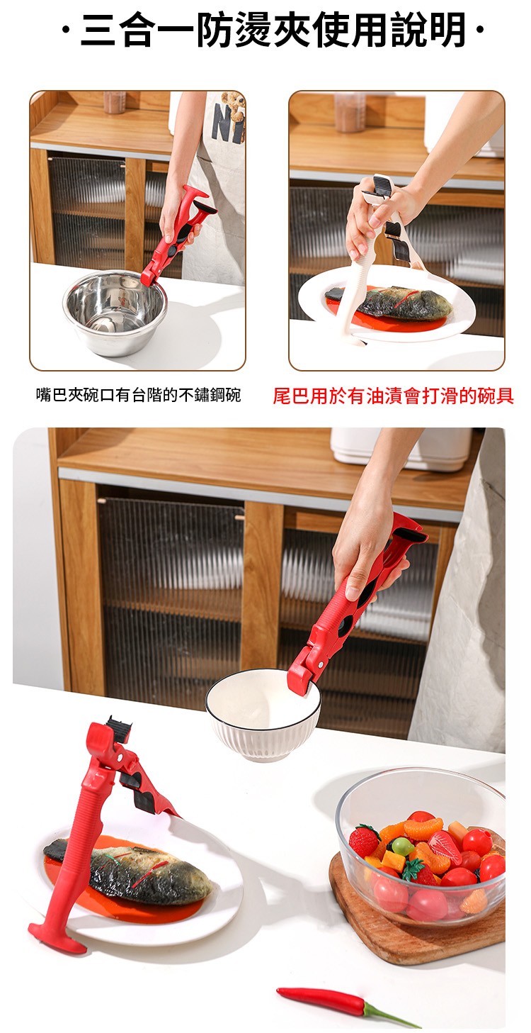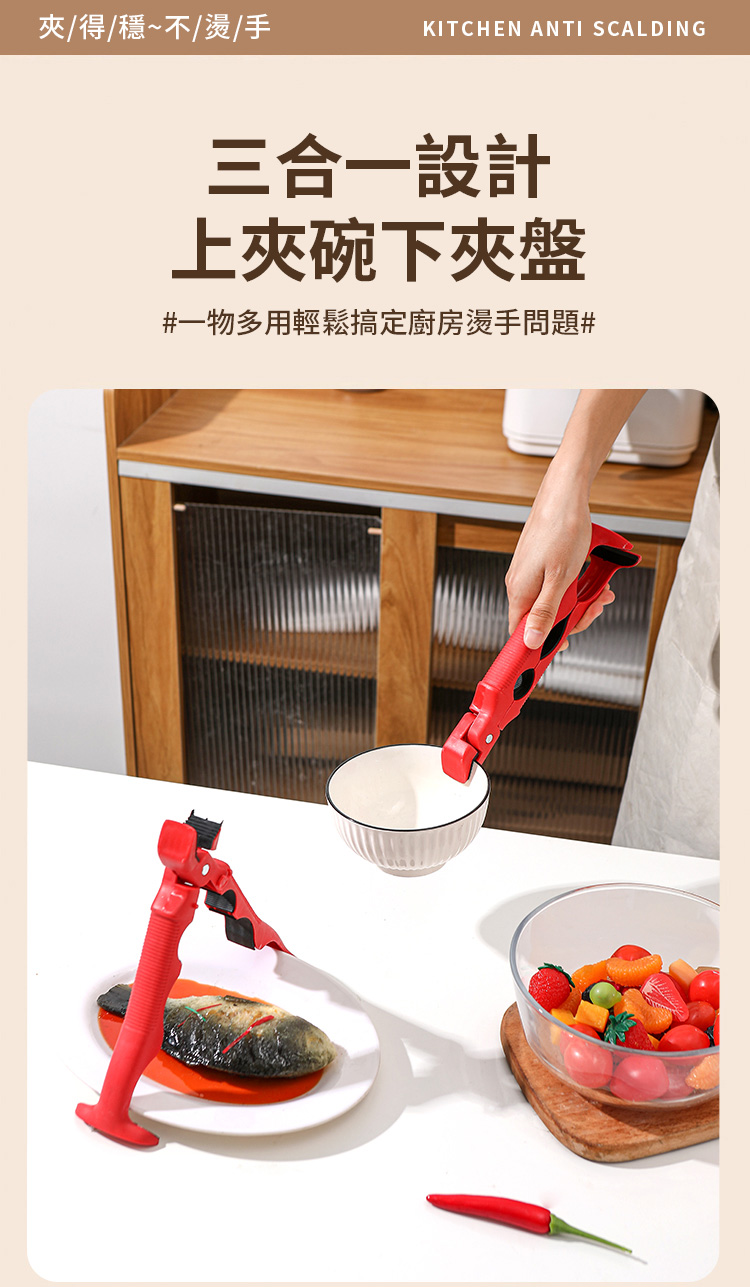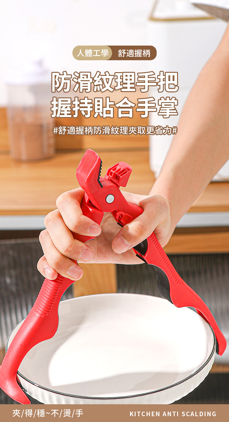 【鍋寳防燙碗盤夾】✅ 三合一設計超全能✅ 360度防滑鎖死 ✅ 食品級矽膠耐熱250°C ✅ 單手秒取滾燙碗盤|告別抹布燙手時代!