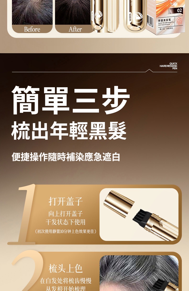 「PAZT植物花香遮白筆」(遮白速梳補色棒)✅ 植物萃取+淡淡花香✅ 筆頭梳設計好順手✅ 防水防汗不掉色✅ 臨時補色可水洗